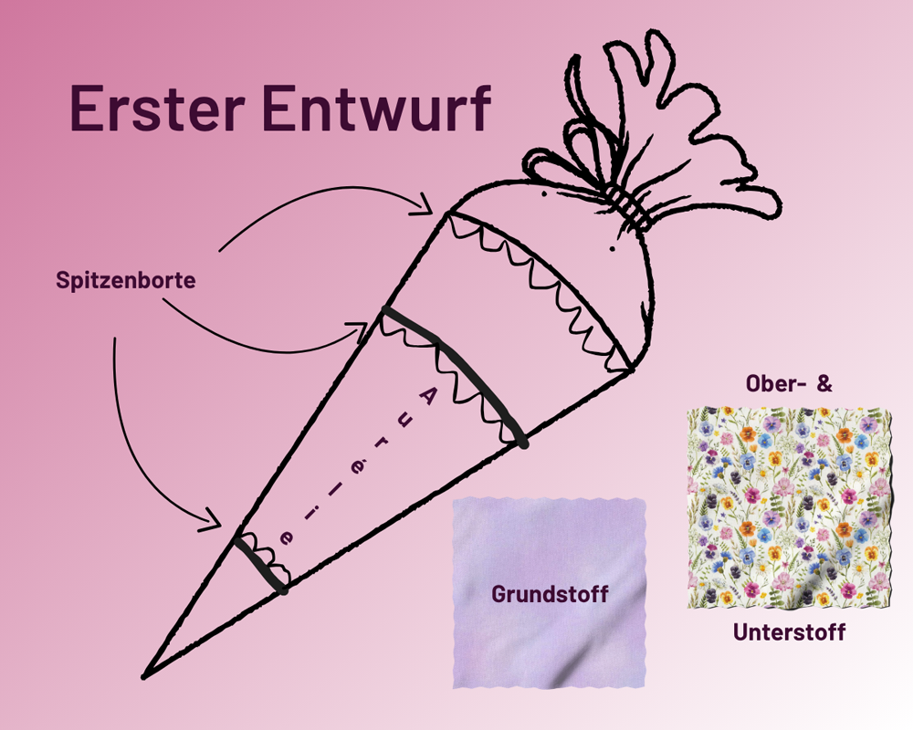 Wenn Du jetzt schon nicht weißt, wie Du Deine Schultüte gestalten möchtest, dann lass Dich doch von Instagram und Co. inspirieren. Aber Du bist auch gerade ganz Live dabei, wie ich die Schultüte meiner Nichte gestalte. Also schau Dir doch mal eine erste Skizze an…